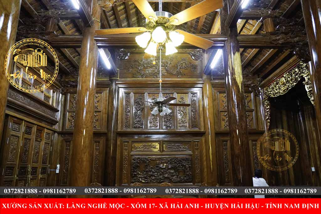 Chúng tôi luôn lựa chọn gỗ chất lượng cao như lim, căm xe, gõ đỏ, cẩm trắc Paurosa, kết hợp cùng đội ngũ thợ giỏi để mang lại công trình hoàn mỹ từ kết cấu đến hoa văn.