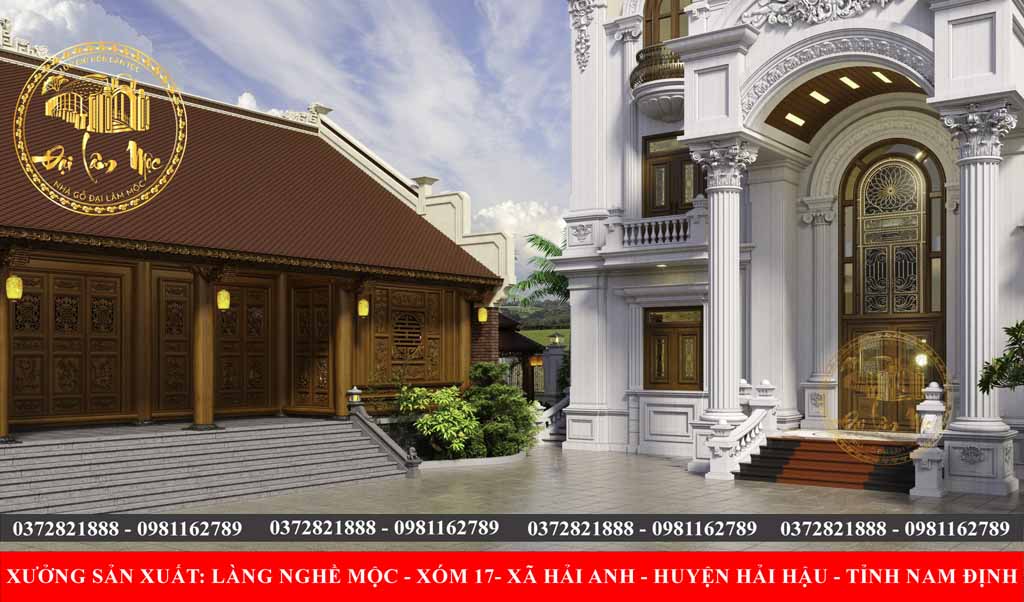 Khuôn Viên Nhà Gỗ 5 Gian Kết Hợp Biệt Thự Tân Cổ Điển – Không Gian Sống Lý Tưởng