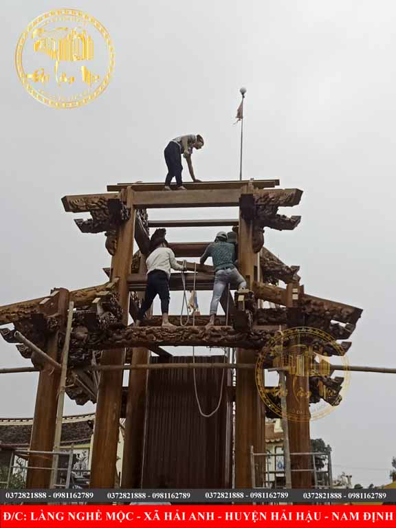 Lắp Dựng Nhà Gỗ 5 Gian Mái Đao Đền Thánh Hoàng Bơ Thoải Cung – Tinh Hoa Kiến Trúc Truyền Thống Việt